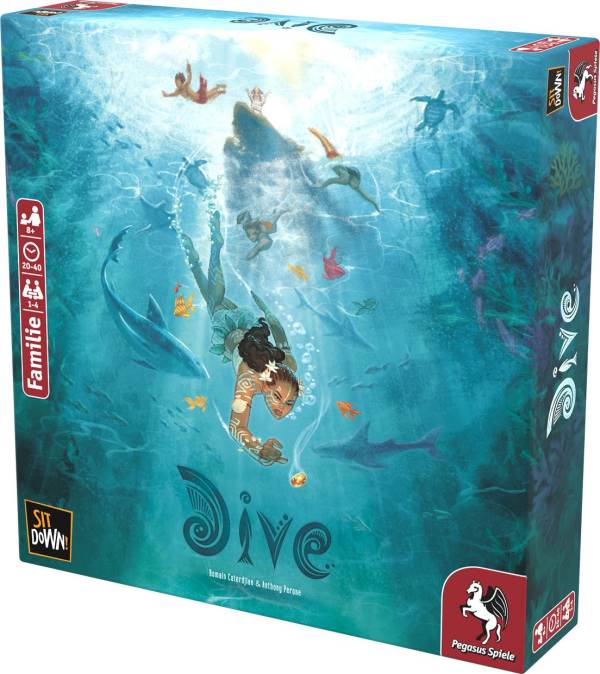 Bei Dive tauchen die Spieler in die Tiefen des Ozeans, um den heiligen Stein des Dorfes zu bergen. Dazu planen sie gleichzeitig geheim ihre Tauchgänge. Dabei müssen sie jedoch gut abschätzen, auf welchen Ebenen sich Meeresschildkröten und Rochen befinden, die ihnen helfen, und wo die Haie, die besser nicht gestört werden sollten.