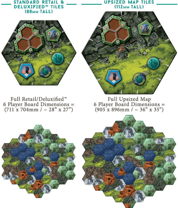 Downfall is an epic 4X game about trying to prevent the end of humanity. For something of this magnitude, and for those of you who have the space on your table, we are offering Upsized Map Tiles!