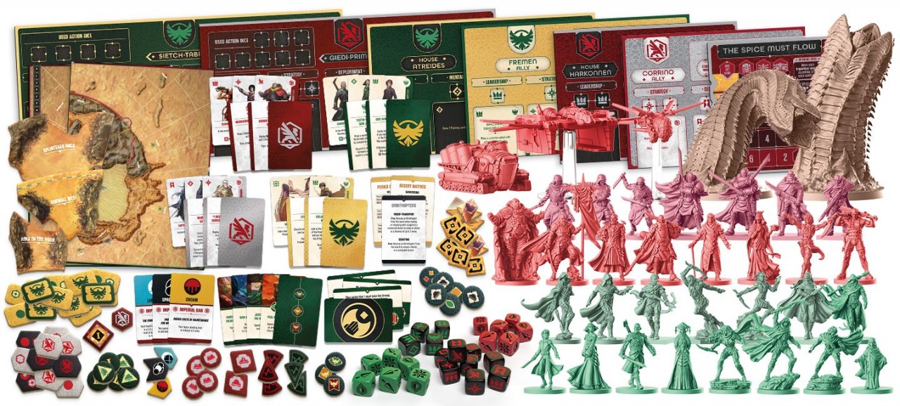 Dune: Krieg um Arrakisist ein thematisches Strategiespiel auf Expertenlevel mit asymmetrischen Fraktionen, das auf den Ereignissen des Wüstenkrieges aus Frank Herberts gefeiertem Roman Dune – Der Wüstenplanet basiert. Das durchtriebene Haus Harkonnen kämpft mit Unterstützung des imperialen Hauses Corrino gegen die Überreste des Hauses Atreides, das mit dem Wüstenvolk der Fremen verbündet ist. Es geht um nicht weniger als die Kontrolle über Arrakis und seine wertvollste Ressource: das Spice.