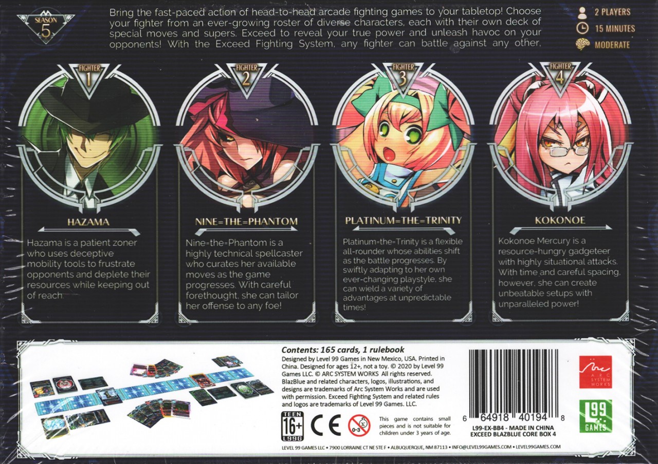 Bring the fast-paced action of head-to-head arcade fighting games to your tabletop! Choose your fighter from an ever-growing roster of diverse characters, each with their own deck of special moves and supers. Exceed to reveal your true power and unleash havoc on your opponents!
