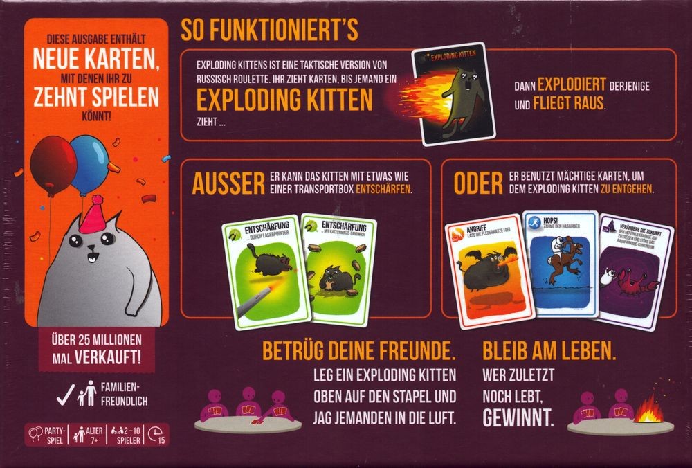 Produkteigenschaften Zu den Produkteigenschaften mehr Menü schließen Produktinformationen „Exploding Kittens: Party Pack (DE)“