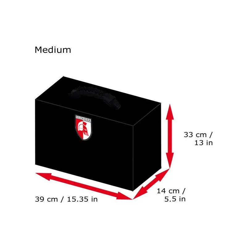 Diese Figurentasche wird ohne Inhalt geliefert. Die Feldherr Mediumi ist die perfekte Transportlösung für größer Armeen mit Panzer und große Miniaturen. Die Tasche hat innen eine rechteckige Nutzfläche von 345 x 275 mm – perfekt passend zu allen Feldherr Half-Size und Full-Size Einlagen. Wenn die Stapelhöhe erreicht wurde, kann man zum Abschluss immer noch eine 4 mm Einlage einsetzen umso einen optimale Schutz der Figuren beim Transport zu garantieren. – Stapelhöhe innen 120 mm – gepolsterte Seitenteile – verstärkter Boden – aus extrem strapazierfähigem Material gefertigt – hochfester, ergonomischer Griff – auf der Vorderseite ist eine Tasche für Bücher oder Zubehör – Ein extra starker Tragegurt bietet höchsten Tragekomfort