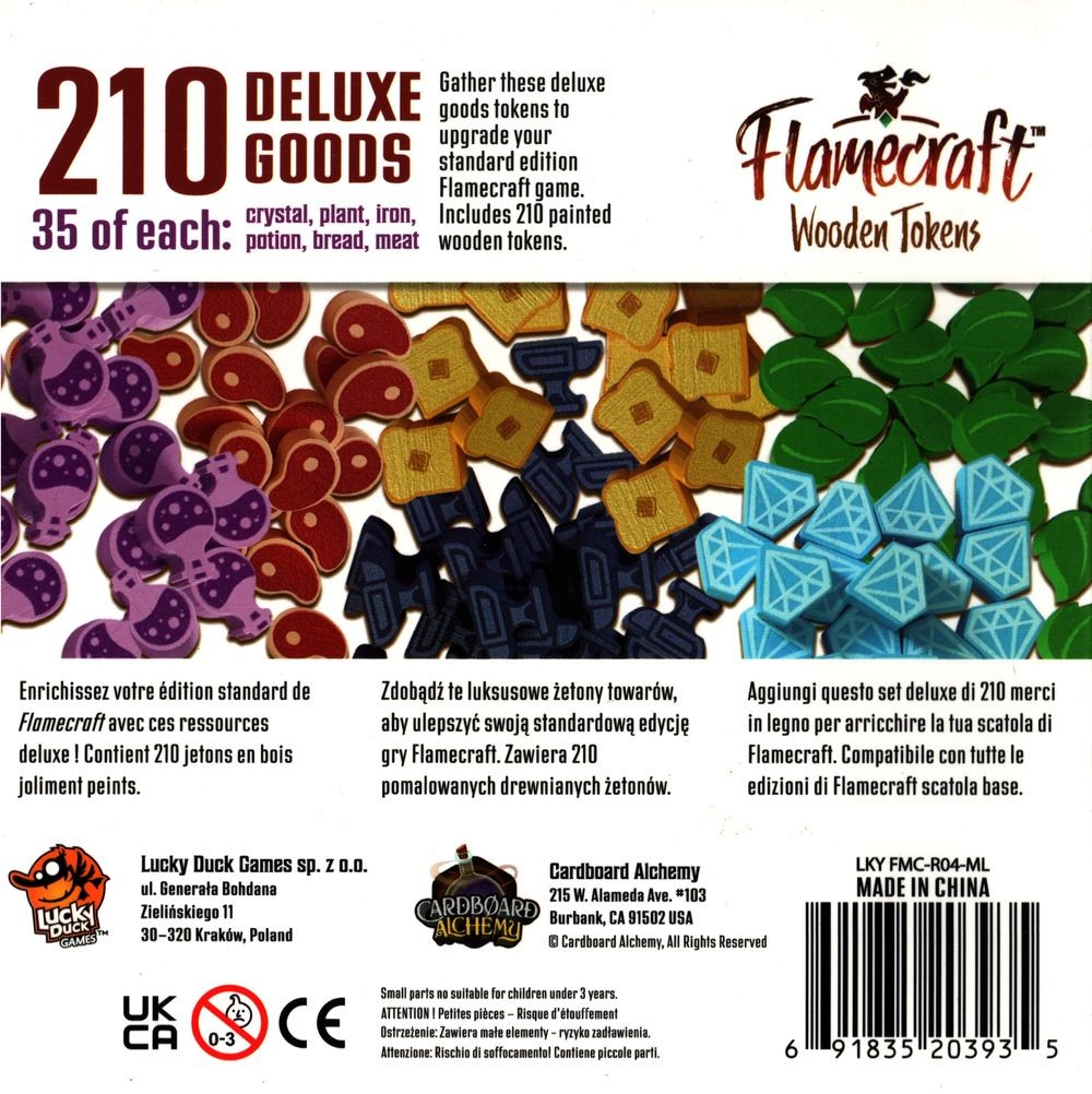 Gather these deluxe goods tokens to upgrade your standard edition Flamecraft game. Includes 210 painted wooden tokens.