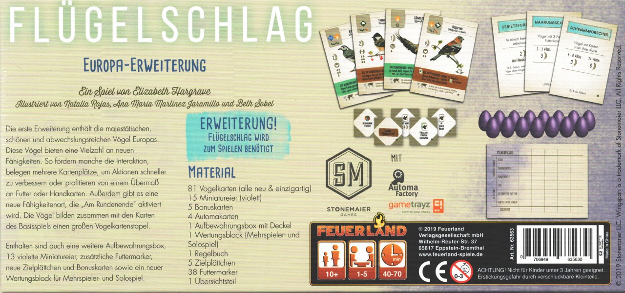 Von Feuerland : In dieser ersten Erweiterung von Flügelschlag wird der Umfang der Welt… mehr Menü schließen Produktinformationen „Flügelschlag: Europa – Erweiterung“
