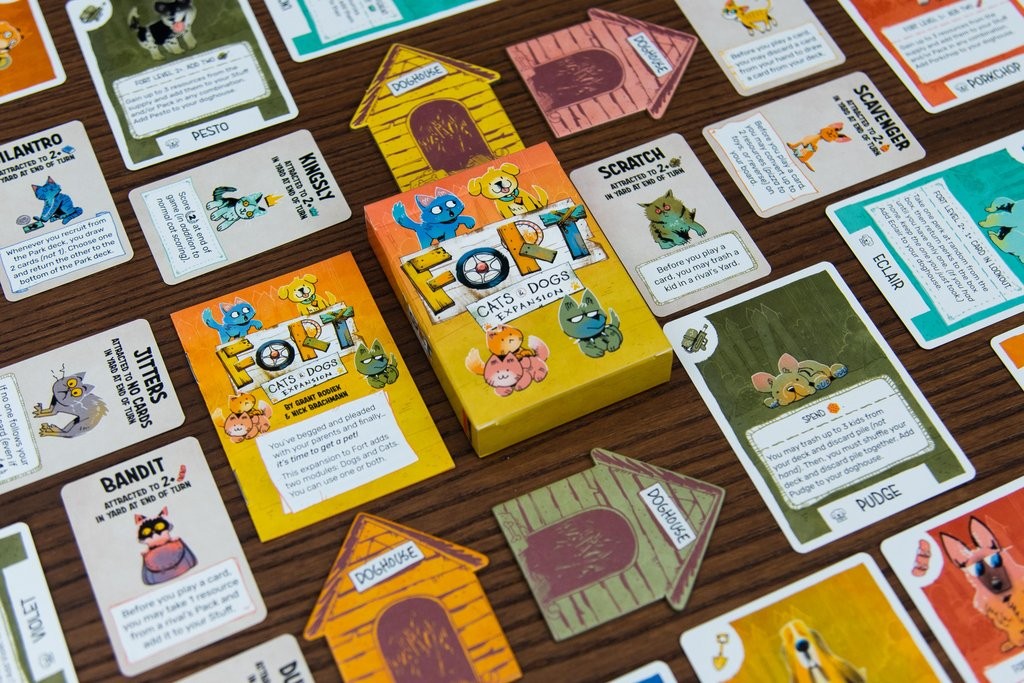 At the end of the game, score points for having the most dogs in your doghouse and for each cat you’ve attracted. You can use one module, or both!