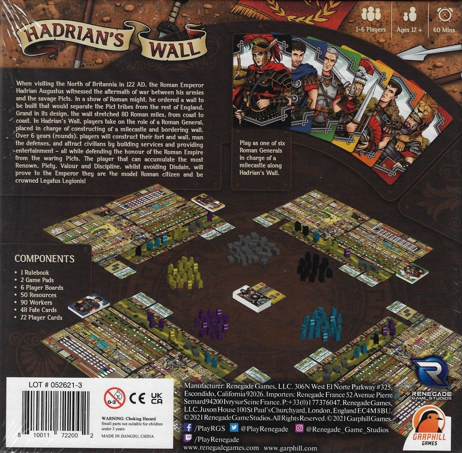 From Garphill Games: When visiting the North of Britannia in 122 AD, the Roman Emperor… mehr Menü schließen Produktinformationen „Hadrian’s Wall“
