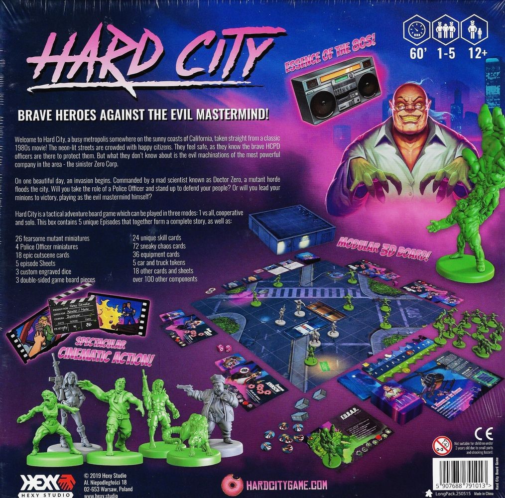 Hard Cityis a tactical adventure board game which can be played in three modes: 1 vs all, cooperative and solo. This box contains 5 unique Episodes that together form a complete story, as well as: