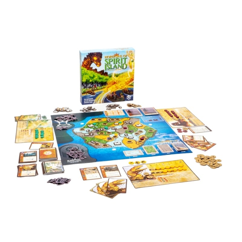 „Horizons of Spirit Island“ verfügt über die gleiche Mechanik wie Spirit Island, verfügt jedoch über ein neues doppelseitiges Spielbrett mit einem optimierten Aufbau, Stanzbrettkomponenten und fünf neue Spirits, die perfekt für Erstspieler von Spirit Island sind. Diese neuen Spirits sind mit allen bestehenden Spirit Island-Komponenten kompatibel, aber um mit Erweiterungen wie Jagged Earth spielen zu können, benötigen Sie eine Kopie von Spirit Island selbst.