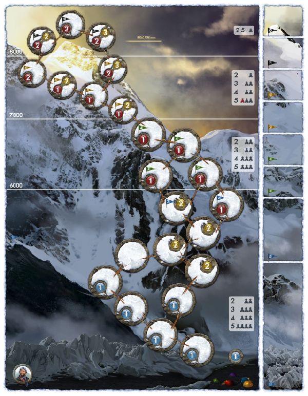 Broad Peak gives you two very different challenges to undertake, which are based on historical achievement made by Polish mountaineers on Broad Peak in 1984. Both have their own boards and few rules changes to make them individual game experiences.