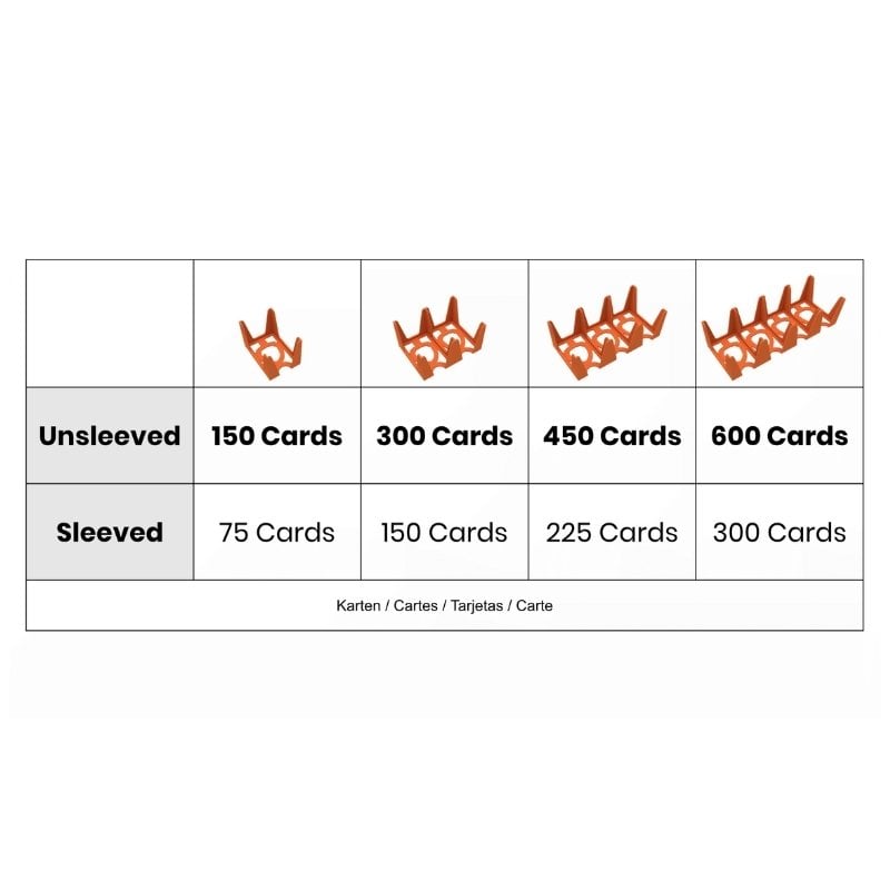 Kartenhalter zur Aufbewahrung von Karten im Format 45 x 68 mm. Perfekt, um alles ordentlich in der Box zu verstauen oder einfach platzsparend auf den Tisch zu stellen. Befinden sich Ihre Karten in Hüllen und rutschen sie vom Stapel? Dann ist dieser Kartenhalter auch die Lösung!
