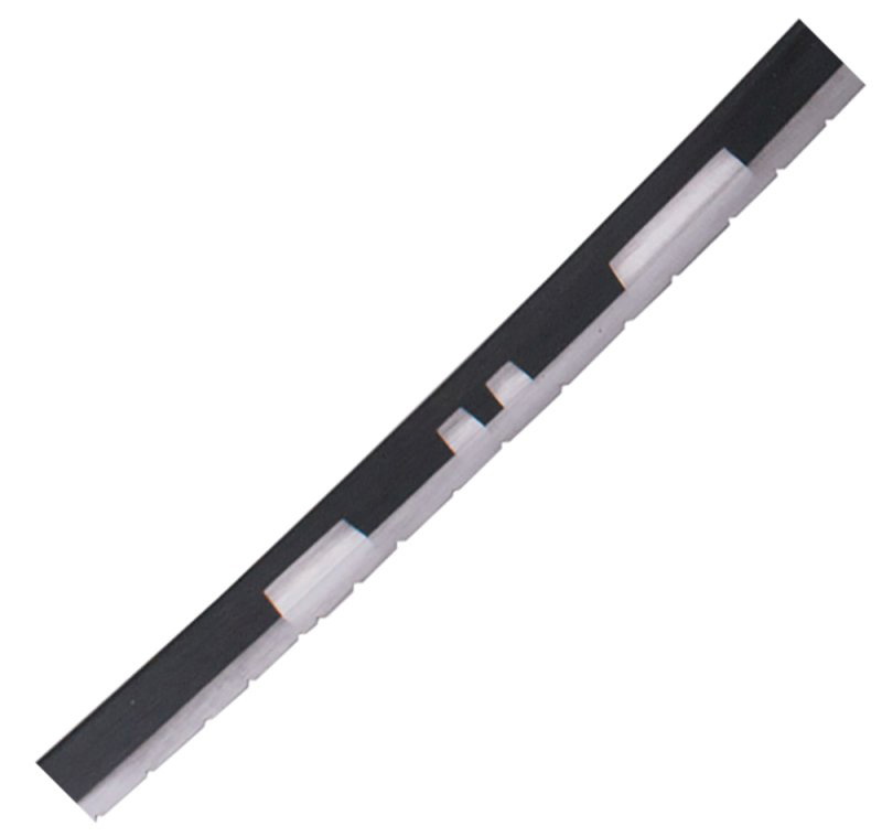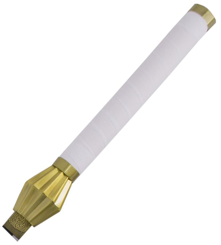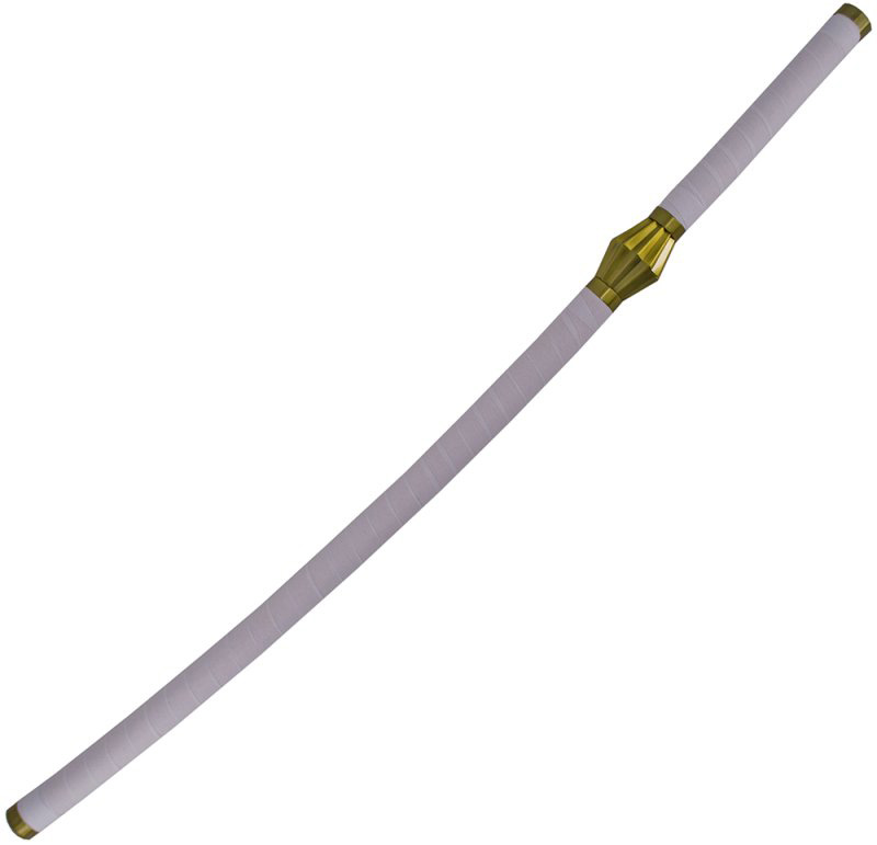 Katana Kenpachi Zaraki mit Verzahnung auf der Klingeund Klinge aus Kohlenstoffstahl mit Holzgriff inklusive Holzscheide die mit weißer Baumwolle umwickelt ist.
