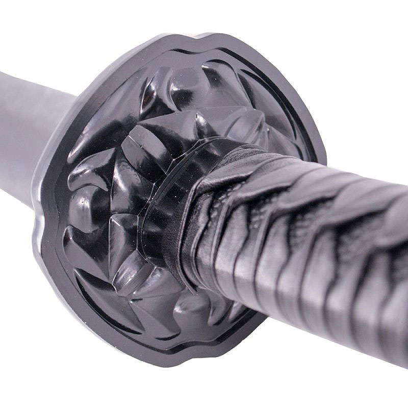 Katana Rivers Blut aus Elden Ringmit Klinge aus Kohlenstoffstahl inklusive schwarzer Saya. Griffstück mit schwarzem Kunstleder bespannt.