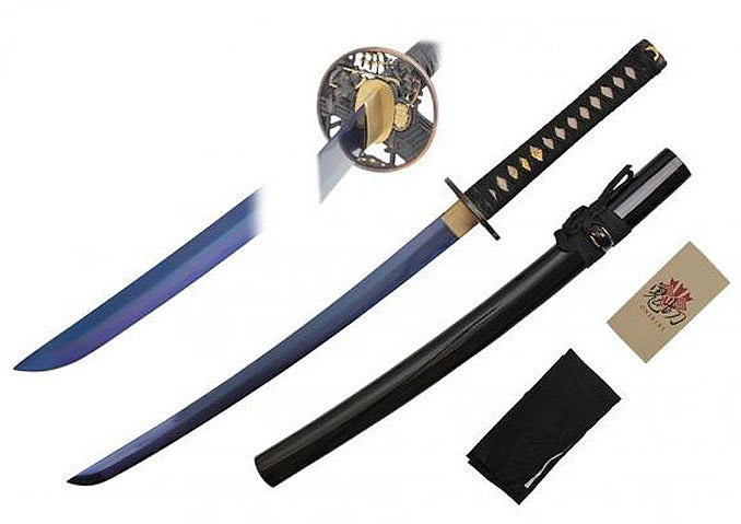 • Klingenmaterial Wakizashi: geschmiedeter 1045er Kohlenstoffstahl