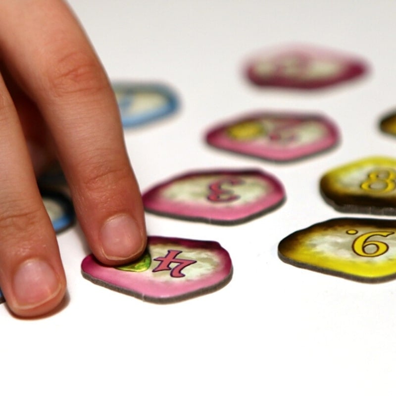 Ein schnelles Spiel mit einfachen Regeln! Wer an der Reihe ist, deckt ein Plättchen auf. Sie müssen entscheiden, ob Sie eine Reihe verlängern, eine neue Reihe beginnen oder sie in Ruhe lassen möchten. Anstatt ein Plättchen umzudrehen, kann man auch ein zuvor aufgedecktes Plättchen aus der Mitte nehmen.
