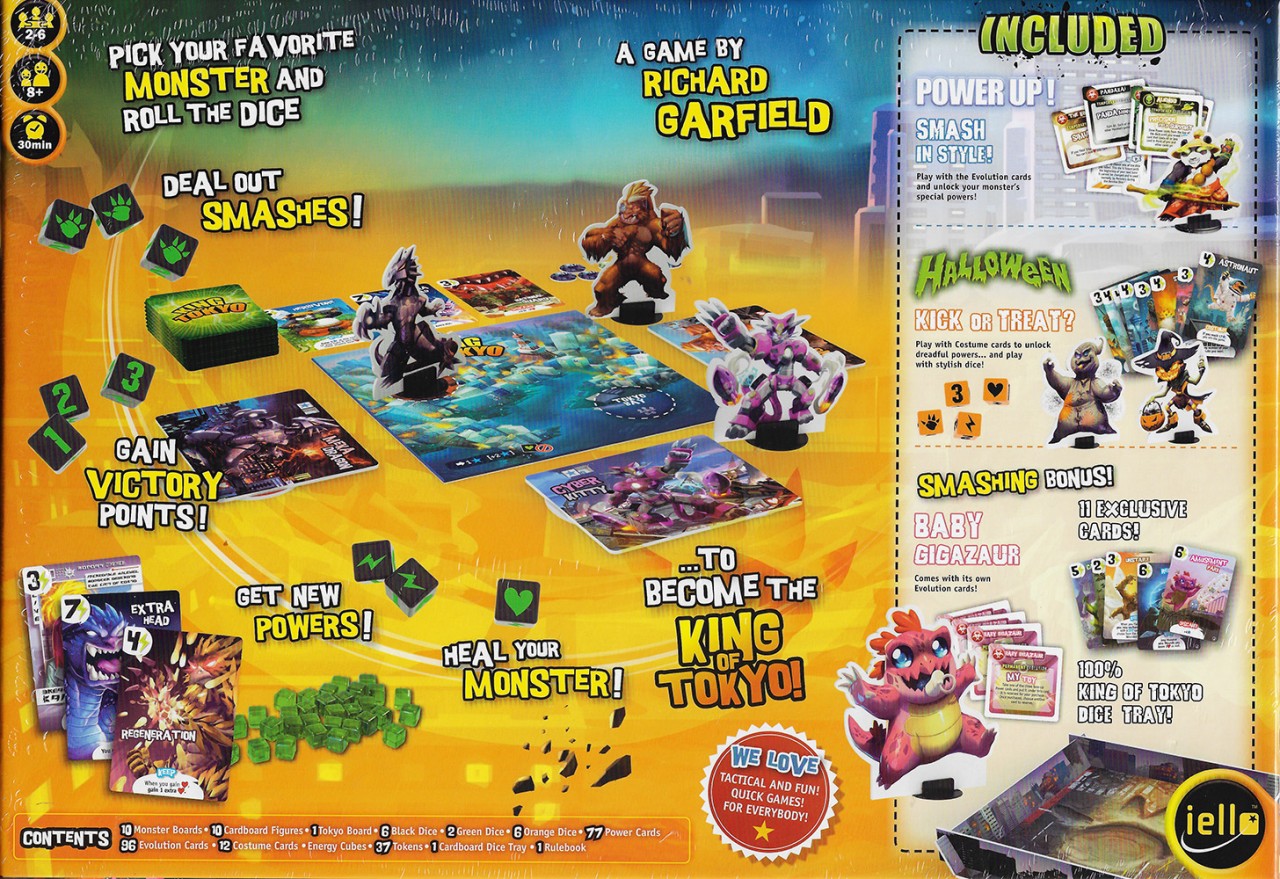 The fight for dominating the city of Tokyo has never been so competitive! This explosive Monster Box is filled with fun and adrenaline! Get King of Tokyo and all of its indispensable Power Up! and Halloween expansions for hours and hours of smashes. Use your Monster’s Evolution Cards to get even more special properties, and dress them up for even more fun! The Monster Box also comes with a brand new version of Gigazaur, exclusive cards and a new dice tray, some much needed bonuses to destroy Tokyo in style!