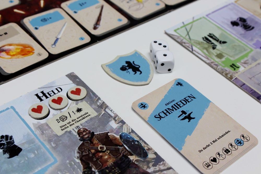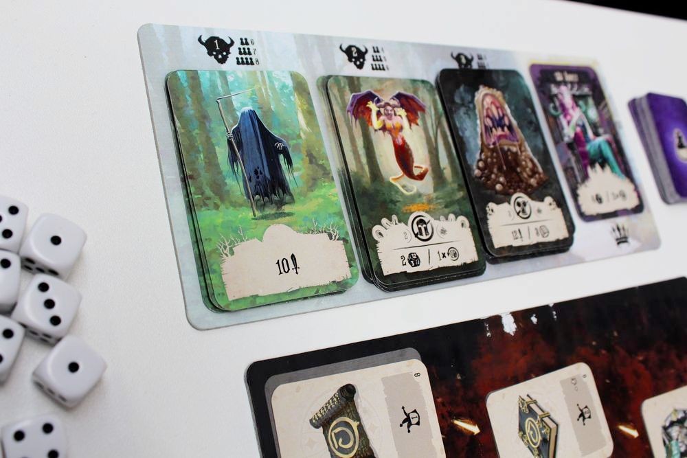 Im Laufe des Spieles stellt ihr euch mit euren Würfeln und eurer Ausrüstung gegen böse Kreaturen. Findet neue Ausrüstung, Waffen, Tränke und Artefakte und wertet diese in der Schmiede zu noch mächtigeren Ausrüstungskarten auf.