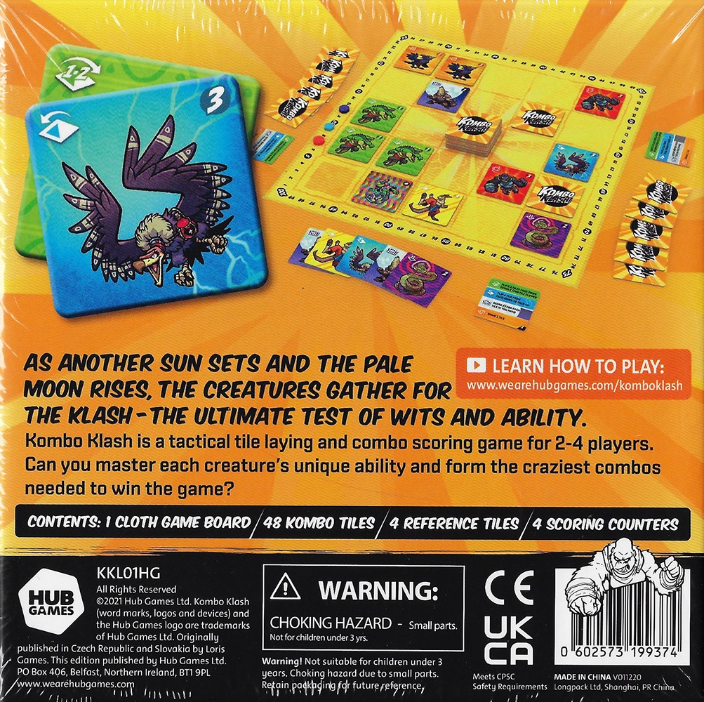A wildly clever game of crazy combos! As another sun sets and the pale moon rises, the creatures gather for the Klash – the ultimate test of wits and ability. Kombo Klash is a tile laying, combo scoring game for 2-4 players. Can you master each creature’s unique ability and form the craziest combos you need to win the game?