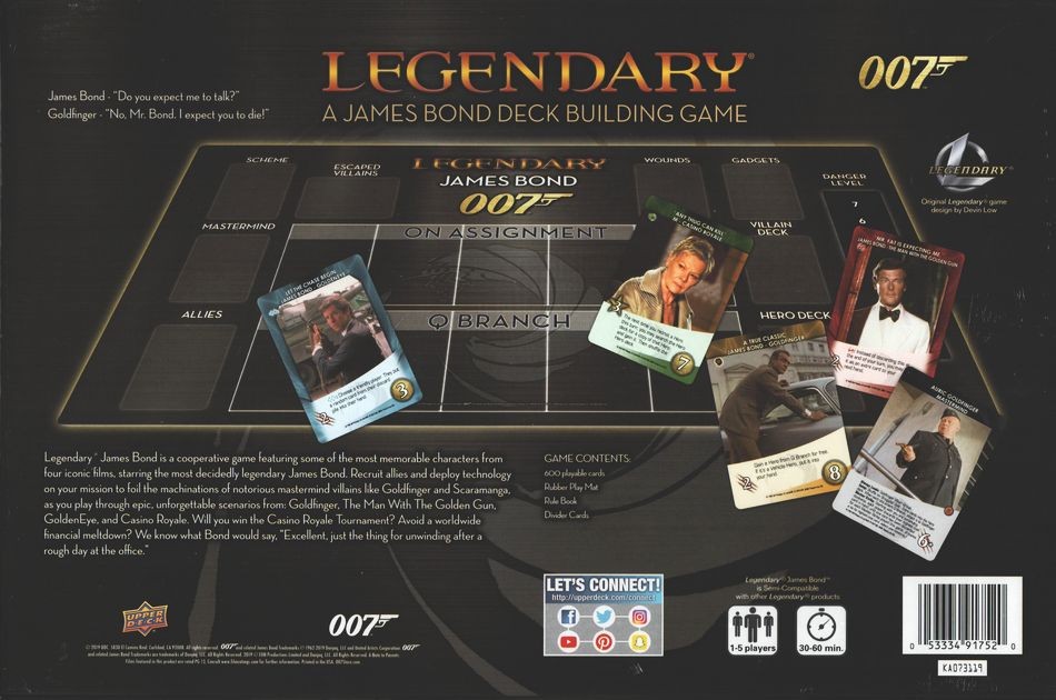 From the publisher: “The name’s Bond. James Bond.” Welcome to Legendary: James Bond… mehr Menü schließen Produktinformationen „Legendary: A James Bond Deck Building Game“