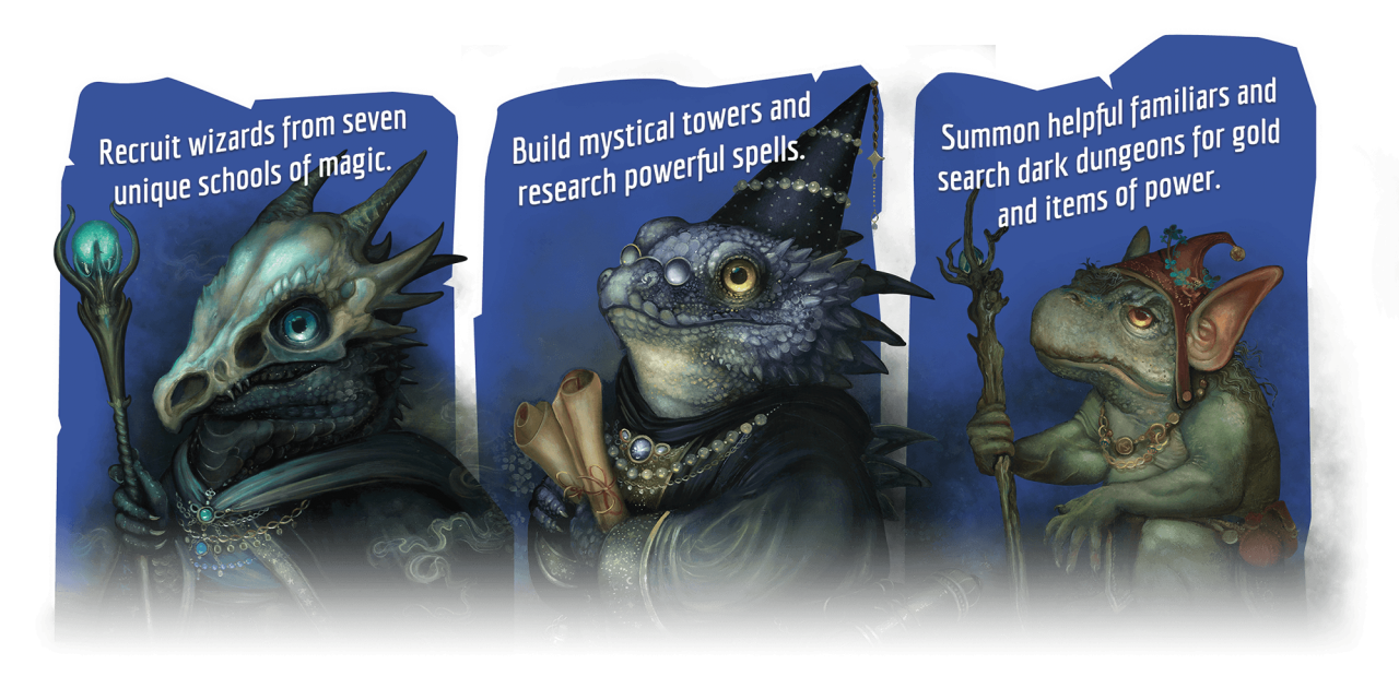 – Compete with the other Arch-Mages to recruit Wizards from seven schools of magic