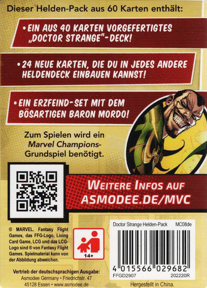 von Asmodee: Auf seiner Suche nach einer Heilung für seine verletzte Hand, entdeckt der… mehr Menü schließen Produktinformationen „Marvel Champions: Doctor Strange (Helden-Pack)“