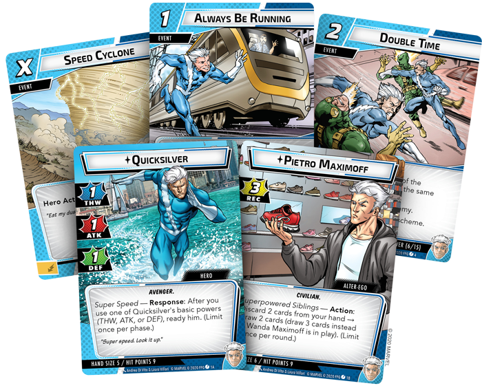 The fastest man on Earth may have a checkered past, but Pietro Maximoff now uses his super speed to fight alongside the Avengers as Quicksilver. You’ll soon get the chance to test his speed for yourself: Fantasy Flight Games is proud to present the Quicksilver Hero Pack for Marvel Champions: The Card Game!