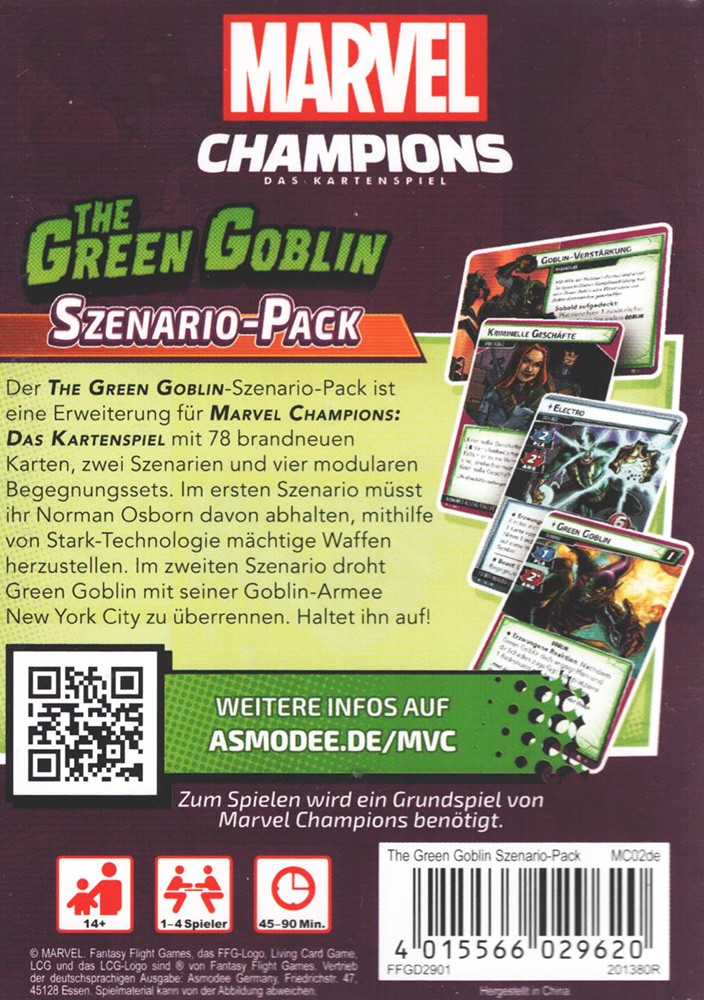 Produkteigenschaften Zu den Produkteigenschaften mehr Menü schließen Produktinformationen „Marvel Champions: The Green Goblin (Szenario-Pack)“