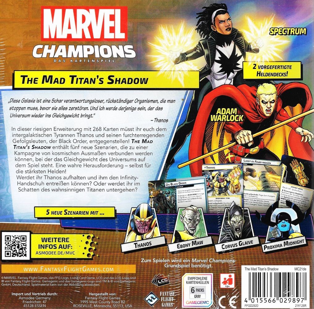 Produkteigenschaften Zu den Produkteigenschaften mehr Menü schließen Produktinformationen „Marvel Champions: The Mad Titans Shadow (DE)“