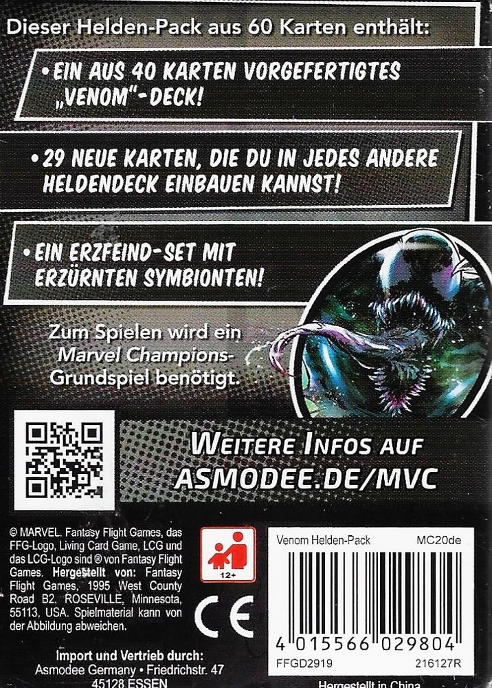 Produkteigenschaften Zu den Produkteigenschaften mehr Menü schließen Produktinformationen „Marvel Champions: Venom (Helden-Pack)“