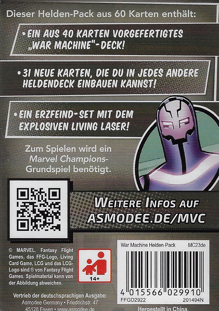 Produkteigenschaften Zu den Produkteigenschaften mehr Menü schließen Produktinformationen „Marvel Champions: War Machine (Helden-Pack)“