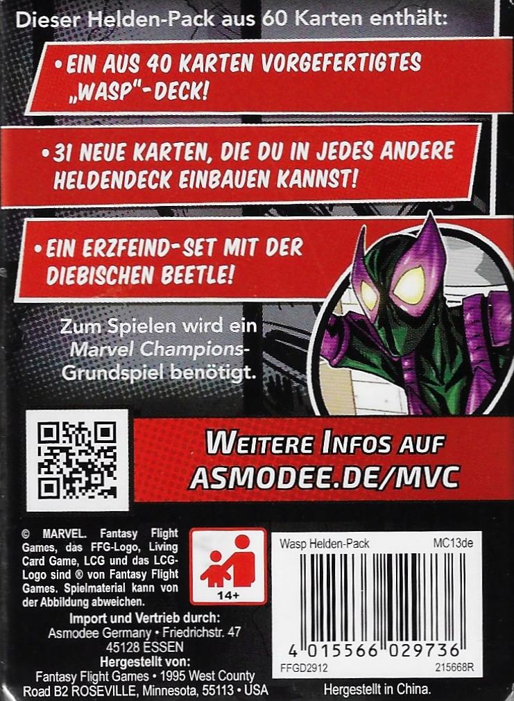 Produkteigenschaften Zu den Produkteigenschaften mehr Menü schließen Produktinformationen „Marvel Champions: Wasp (Helden-Pack)“