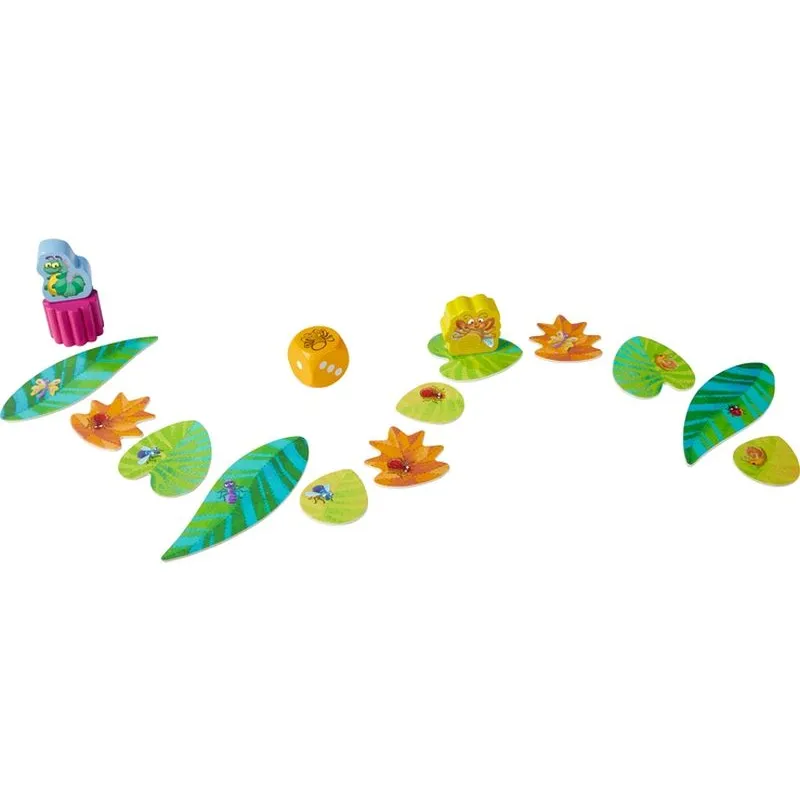 Da leuchtet doch was! Raupe Ralf reckt sich und entdeckt einige Blätter entfernt Glühwürmchen Gloria. Er möchte unheimlich gern mit ihr spielen… Wer hat etwas Würfelglück und schafft es, mit der kleinen Raupe zum Glühwürmchen zu laufen, bevor Gloria das Ende des Blätterwegs erreicht hat und wegfliegt?