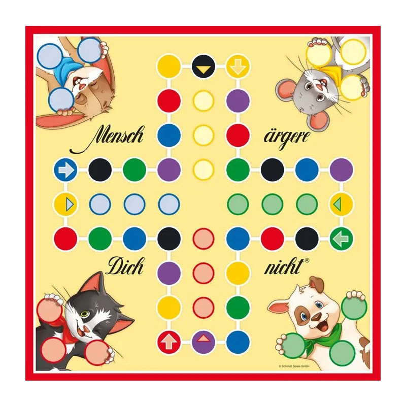 Mit dieser kindgerechten Farbversion können schon Kinder Mensch ärgere dich nicht problemlos spielen. Und zählen können muss man auch noch nicht, um seine Spielfiguren als Erster ins Ziel zu bringen. Die Würfelfarben zeigen an, wie weit man ziehen darf. Und mit den lustigen 3D – Tierfiguren sind Spaß und Spannung garantiert.