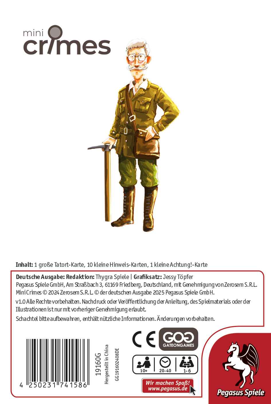 Die MiniCrimes-Fälle sind kooperative Krimispiele, in denen die Spielenden ihre Beobachtungsgabe und ihre detektivischen Fähigkeiten unter Beweis stellen müssen, um einen mysteriösen Fall zu lösen. Sie untersuchen dabei den Tatort und bis zu 10 Hinweise, die sie mit Bedacht auswählen müssen, um das Geheimnis zu lüften!