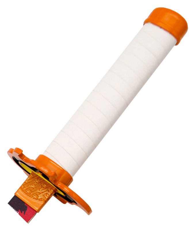 Mini Katana von Kyojuro Rengoku, ein beliebter Charakter aus der Serie „Demon Slayer“ bekannt für seinen starken Willen und seine beeindruckenden Kampffähigkeiten. Kyojuro Rengoku war eine wichtige Nebenfigur von Demon Slayer.
