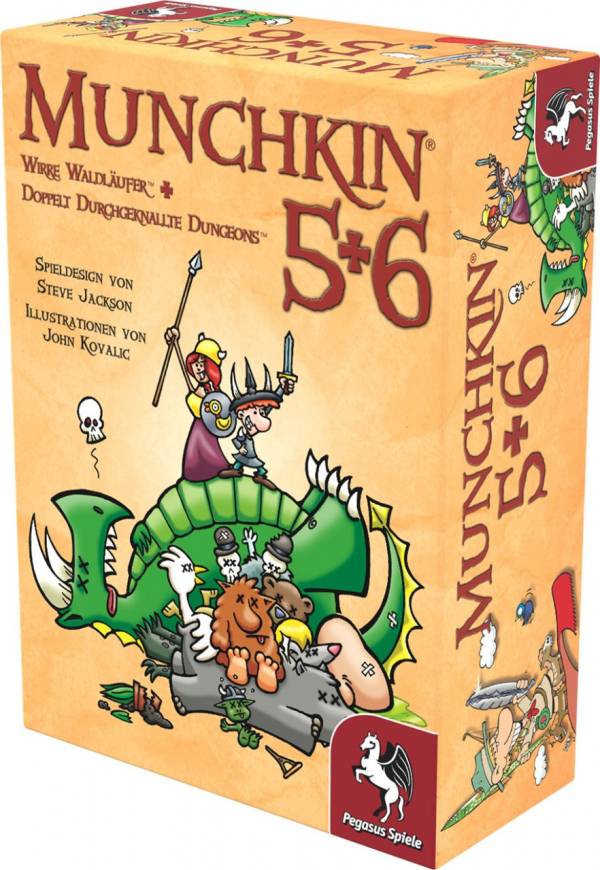 Noch mehr vom abgedrehten Humor von Steve Jackson und John Kovalic findest du in dieser Munchkin-Dreifachbox bestehend aus den Erweiterungen Wirre Waldläufer (5), Durchgeknallte Dungeons (6) und Grausige Grüfte (6.5).