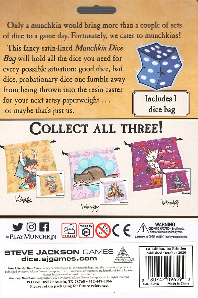 from Steve Jackson Games: Only a munchkin would bring more than a couple sets of dice to… mehr Menü schließen Produktinformationen „Munchkin: Munchkin – Dice Bag“