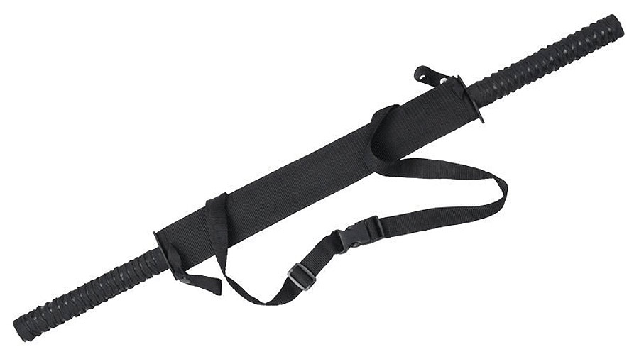 Der Griff ist aus Stahl mit einer Wicklung aus Baumwolle. Am Ende ist Griffes ist ein silber farbener Knauf angebracht. Die Scheide des Schwertes besteht aus schwarzem Nylon und hat verstellbare Schulterriemen. Snap Sicherungen sichern die Schwerter in der Scheide