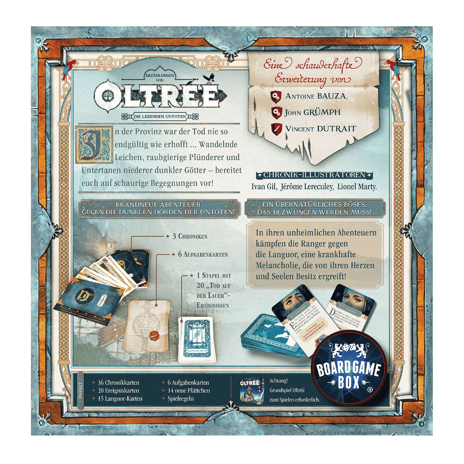 In «Erzählungen von Oltréé: Die lebenden Untoten» gibt es brandneue Abenteuer gegen die dunklen Horden der Untoten und ein übernatürliches Böses, das bezwungen werden muss. Und wenn das noch nicht genug wäre, kämpfen die Ranger in ihren unheimlichen Abenteuern gegen die Languor, eine krankhafte Melancholie, die von ihren Herzen und Seelen Besitz ergreift.