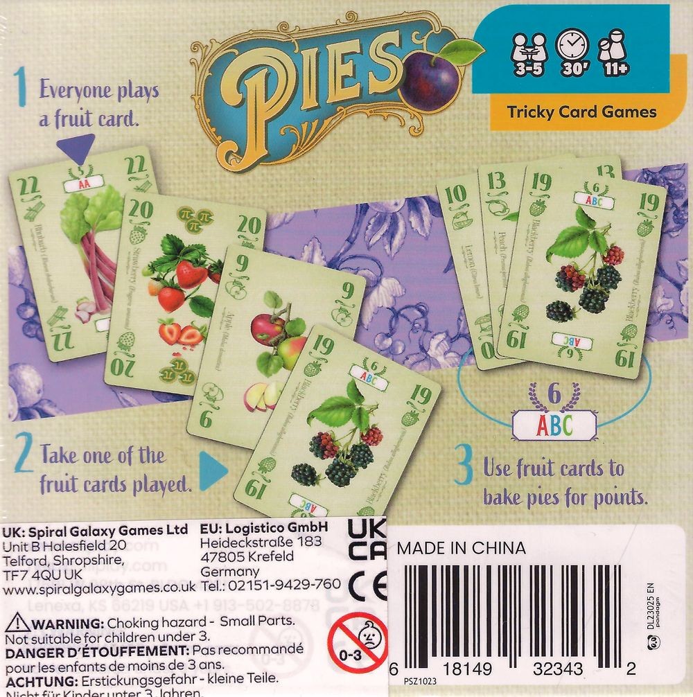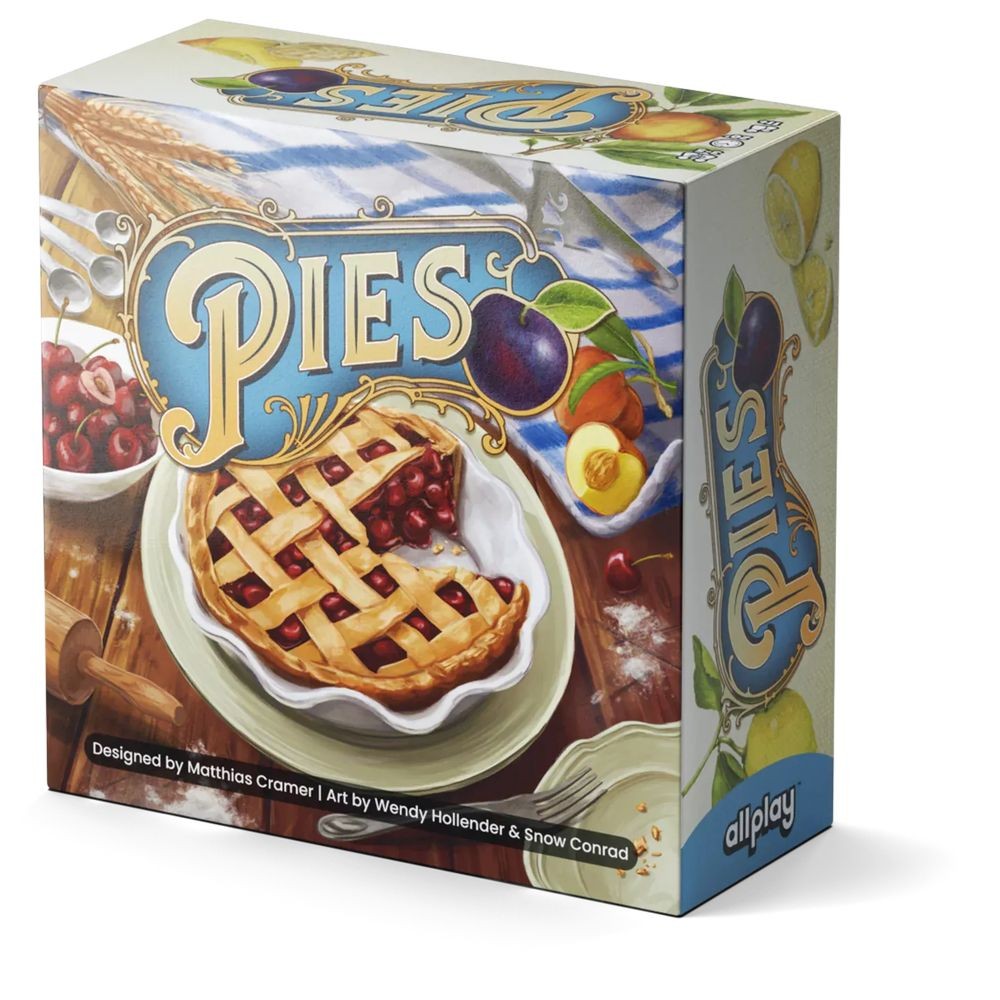 Quick and tasty! In Pies, you’ll play cards to determine the draft order, then draft those exact same cards. Then, bake pies by combining the cards in set recipes. Will you play high and snag a card you’ve been looking for? Or, will you try and aim low, bolstering your inventory of plums? Will your opponents allow either strategy? Special actions on specific cards further complicate the decisions!
