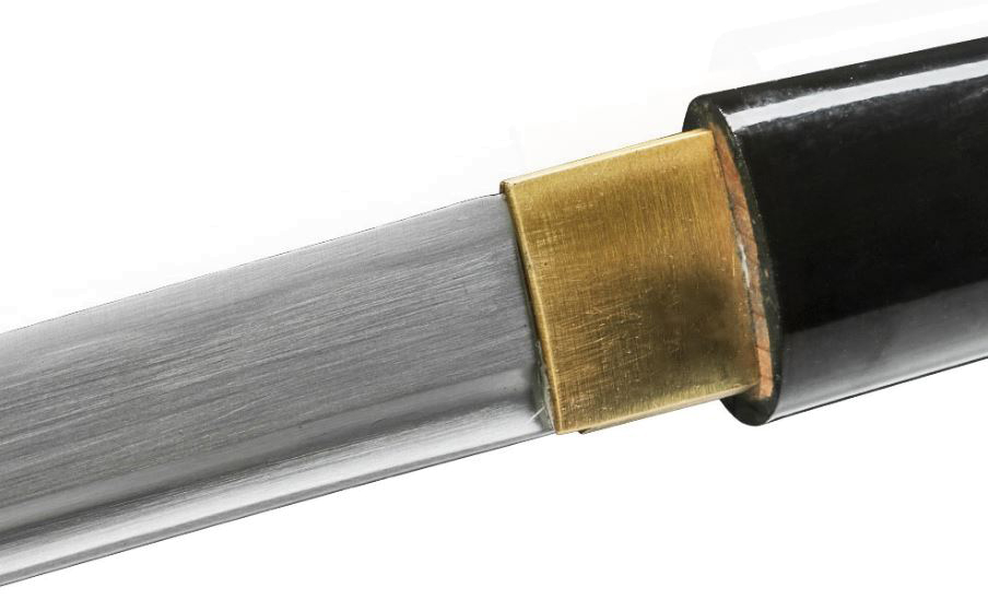Katana Practical Bishamonmit Kanji Gravur in der Farbe schwarz mit 1045er Kohlenstoffstahl Klinge die von Hand gefertigt ist, so dass der Kohlenstoff gleichmäßig in der Klinge verteilt wird, um eine beständige Härte zu erreichen. Der Klinge wurde ein Bohi hinzugefügt, um das Gewicht der Klinge zu reduzieren und beim Schwenken hörbare Rückmeldung zu geben. Die Klinge besitzt eine Kanji Gravur. Die Saya des Schwertes ist aus Hartholz mit einer hochglänzenden Oberfläche versehen. Der Sageo ist schwarze Baumwolle