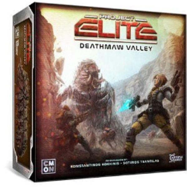 Board Game Geek Avg Player Rating:6.6 Players:1 to 6 Published:2019 Content Notes:Kickstarter Deathmaw Valley Expansion for Project ELITE. Includes Deathmaw Valley Expansion, Kickstarter Exclusive figures Ronan, Stinger Tail, Mizi, and Arachne. Requires Project ELITE core game to play (sold separately). Please note: unless otherwise stated paid add ons from the Kickstarter Campaign are not included. The Proxies have released a foul new bio-weapon – the ravenous Deathmaw! After suffering the unstoppable hunger of the segmented titan scuttling through cities, its mandibles shoving anything they can grasp into its waiting mouth, the tacticians of Project: ELITE put together a plan. They lured it into a tight valley with high-radiation salvage bait and closed off one end with heavy ordnance. The Great Worm has only one direction to go – into the deadly firepower and traps of Project: ELITE! —from the publisher