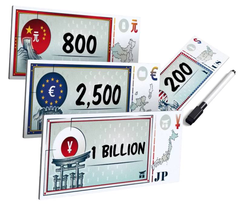 Player markers on the scoring track now reveal which player has the most victory points, but this is not the end. Players must now add up the amount of money they printed and the player who printed the most money loses all their victory points!