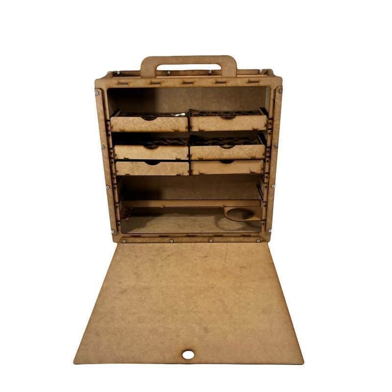 Rochela P36 ist ein tragbares Malstudio, das Ihnen jederzeit und überall einen kompletten Malraum mit Platz für 48 Citadel-Farbdosen und multifunktionalen Räumen bietet.
