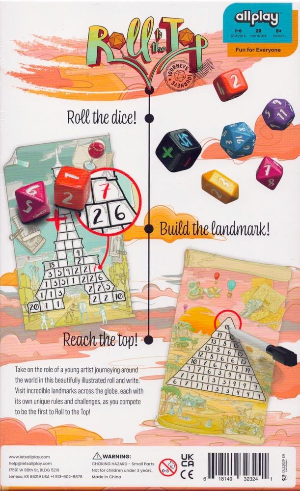 From Allplay: Roll, Write, and Race To The Top of Famous Landmarks! A roll and write… mehr Menü schließen Produktinformationen „Roll to the Top: Journeys“