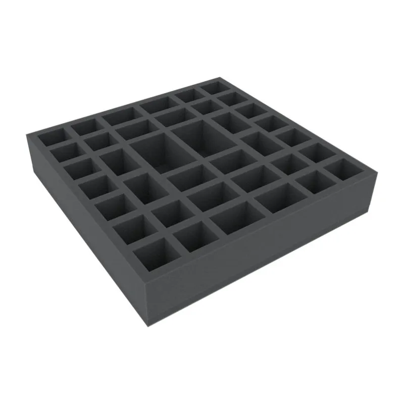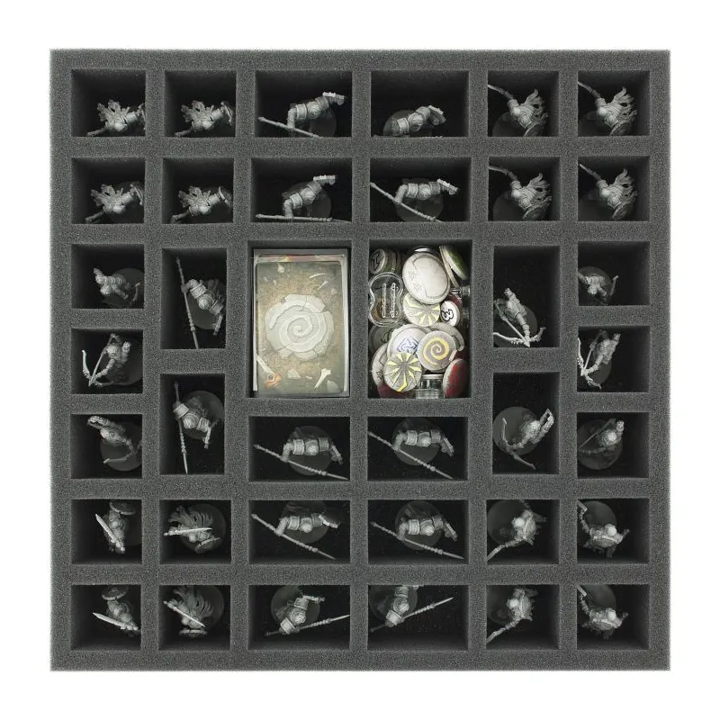 Speziell für die Runewars – Miniaturenspiel Brettspielbox geschnittene Einlage. Die 38 Fächer der Schaumstoffeinlage eignet sich besonders gut für die Infanterie Einheiten des Spiels.
