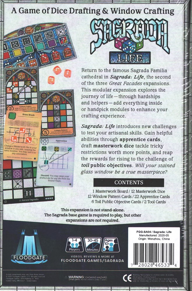 Sagrada: Lifeintroduces new challenges to test your artisanal skills. Gain helpful abilities through apprentice cards, draft masterwork dice to gain prestige for tackling tricky new restrictions, and reap the rewards of rising to the challenge of toil public objectives. Will your stained glass window be a true masterpiece?
