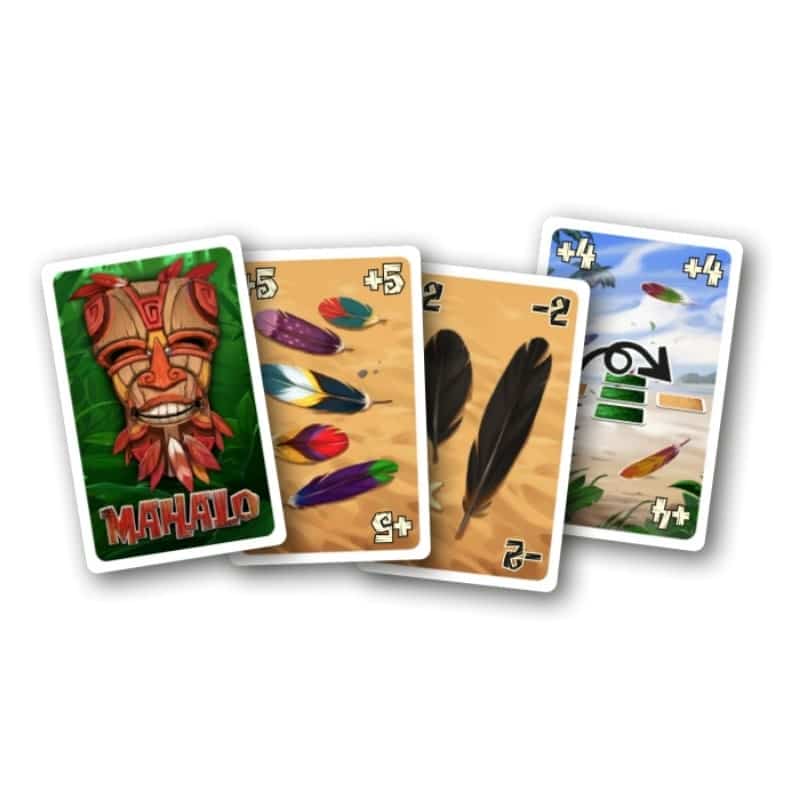 Das Federfest steht vor der Tür! Bei diesem Kartenspiel hat jeder Spieler seine eigene Maske, die anderen Spieler wissen jedoch nicht, um welche es sich handelt. Die Spieler können am Strand bunte Federn sammeln, um die Masken möglichst schön zu verzieren. Je bunter die Federn, desto mehr Punkte ist die Maske am Ende des Spiels wert.