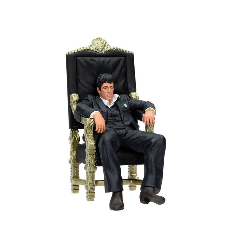 Tony Montana in seinem Stuhl, basierend auf einer der bekanntesten Szenen aus dem Film Scarface.