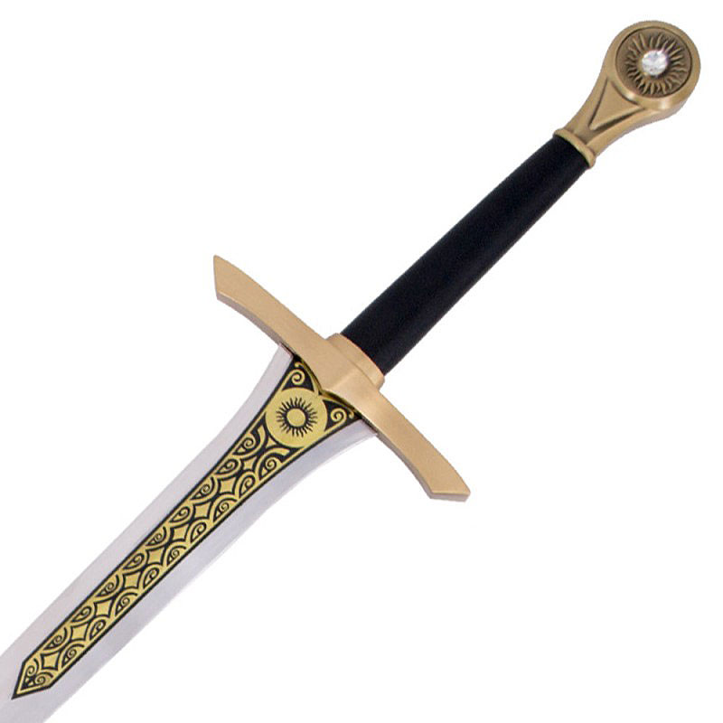 Schwert von Elendilmit polierte Stahlklinge und goldenen-schwarzen Gravur inklusive schwarzer Kunstlederscheide