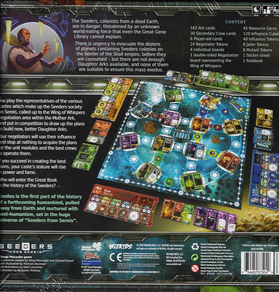 The hit sci-fi game now in English for the first time! In the far distant future, colonists from a dead Earth, called Seeders, are threatened by a world-eating force.  You must design a new, better ark for the Seeders to escape their new homes. Draft cards to lay the foundation for your ark. Negotiate to gain the best modules and personnel. Take advantage of complex interactions. Create the colony ship that will save the Seeders from extinction!